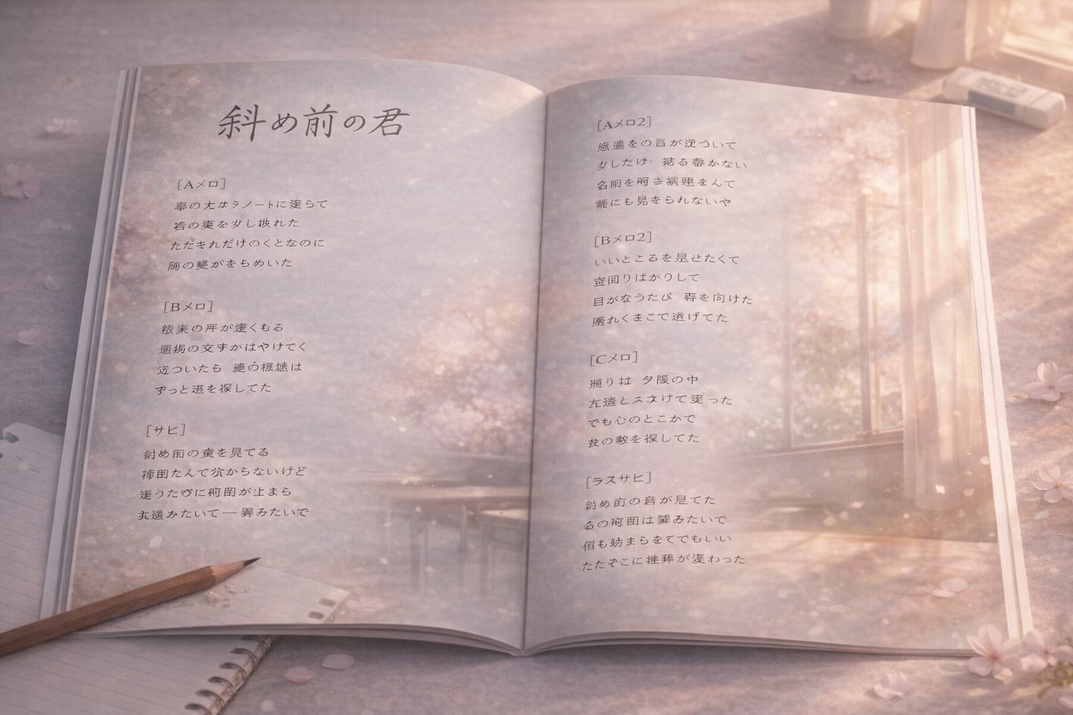 春の光がノートに落ちて